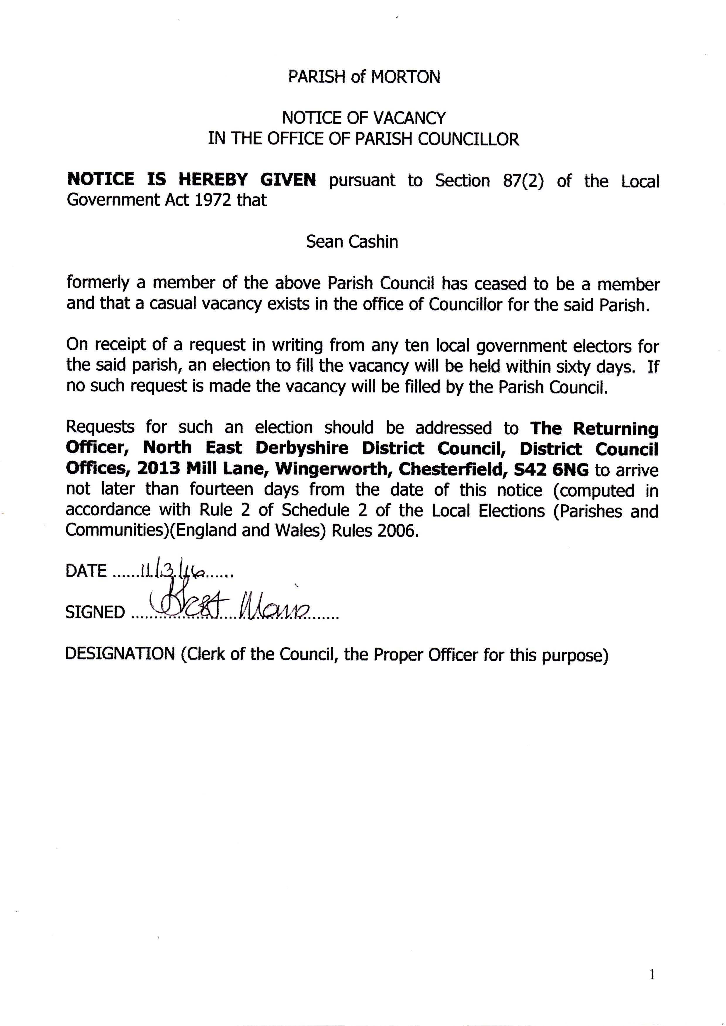 We are pleased to announce the appointment of Tina Frost Morris as the new Clerk and Responsible Financial Officer to the parish council.